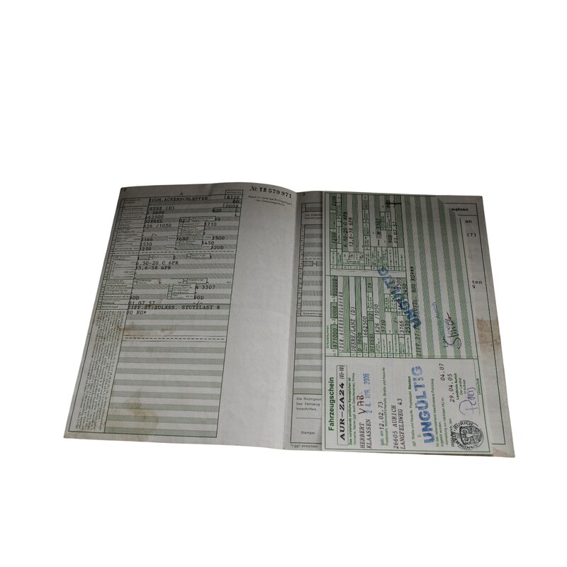 Carte grise d3606, n° 662500 Délivrée uniquement sur justificatif au propriétaire actuel et légal de cette Lanz.
