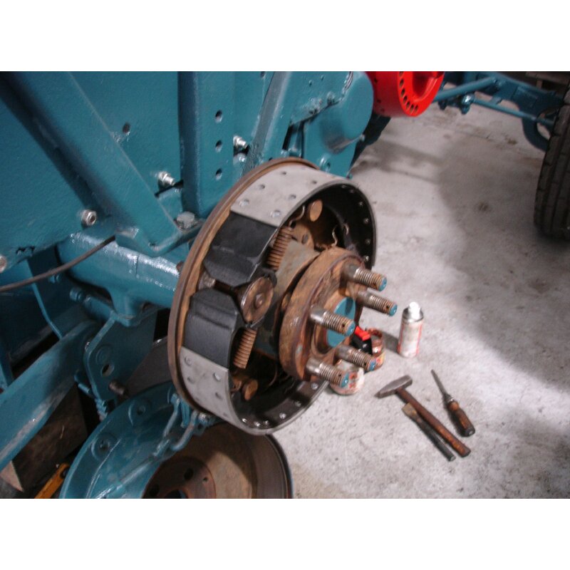 Fußbremsanlage: Aufnieten Bremsbeläge Fußbremse, anpassen, bohren, senken, nieten