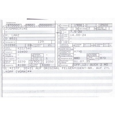 Título del vehículo, registro del vehículo, informe del TÜV Lanz Bulldog d8531